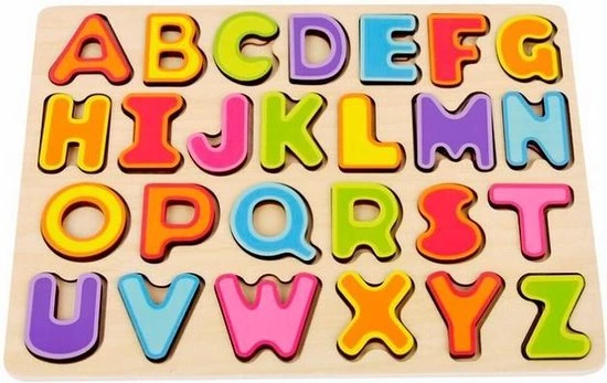 Wil je kindje het alfabet leren? Met de Playing Kids Houten Alfabetpuzzel lukt dat zeker. De letters hebben vrolijke kleurtjes en prints.