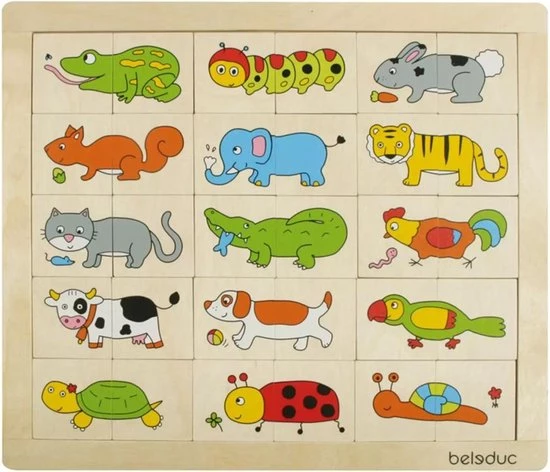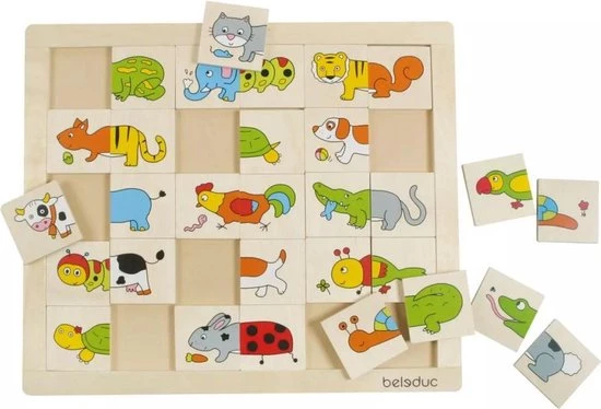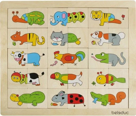 Uw kinderen zullen ontzettend veel plezier hebben met deze match & mix puzzel van Beleduc! Dit speelgoed biedt meerder speelopties. Uw kinderen kunnen de puzzelstukjes bij elkaar zoeken om de puzzel compleet te maken, of hun eigen fantasiedieren creëren. Ze kunnen ook een spelletje memory spelen door de voor- en achterkanten bij elkaar te zoeken. Dit puzzel speelgoed is geschikt voor kinderen van 24 maanden en ouder. De dierenpuzzel bestaat uit 30 delen.