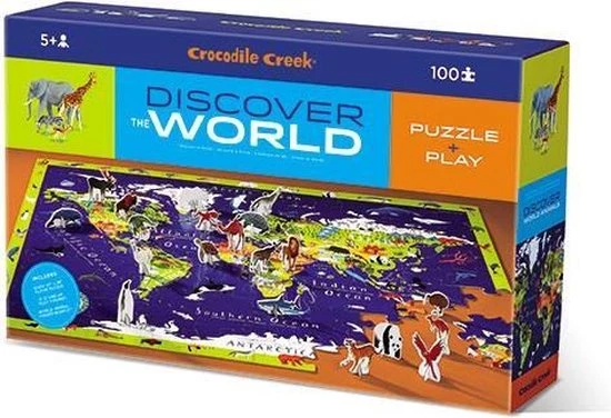 Crocodile Creek Ontdek De Wereld – Vloerpuzzel 100st + Speelset