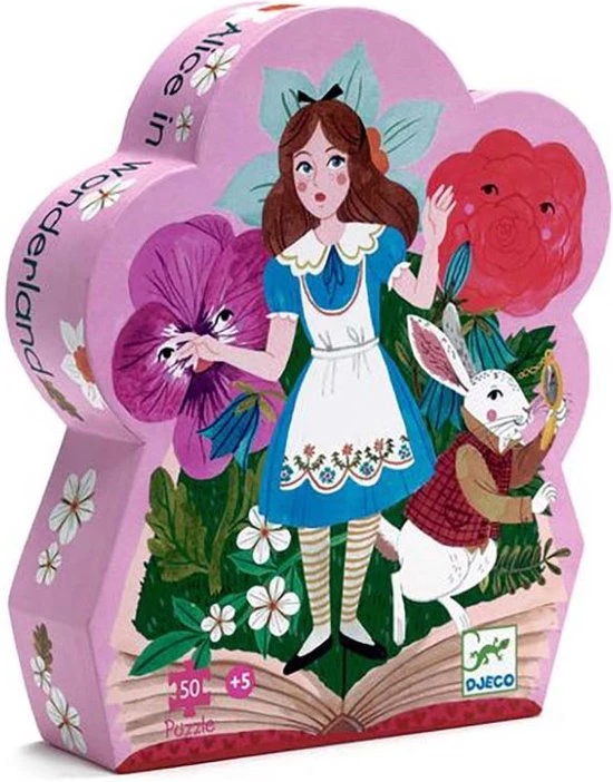 Deze mooie puzzel van Djeco laat het verhaal van Alice in Wonderland zien. De puzzel bestaat uit 50 stukken en is verpakt in een mooie kartonnen doos.