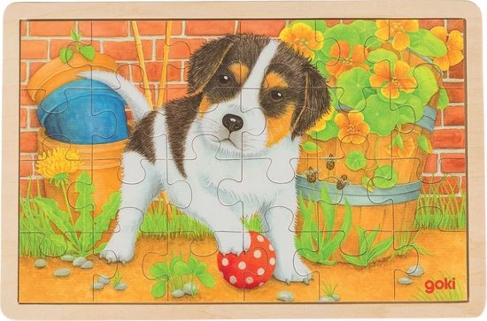 Leg alle puzzelstukjes op de juiste plaats en zie een schattige puppy met een bal spelen! De puzzel bestaat uit 24 stukjes en belooft veel puzzelplezier!