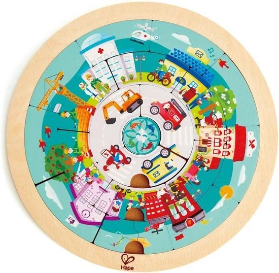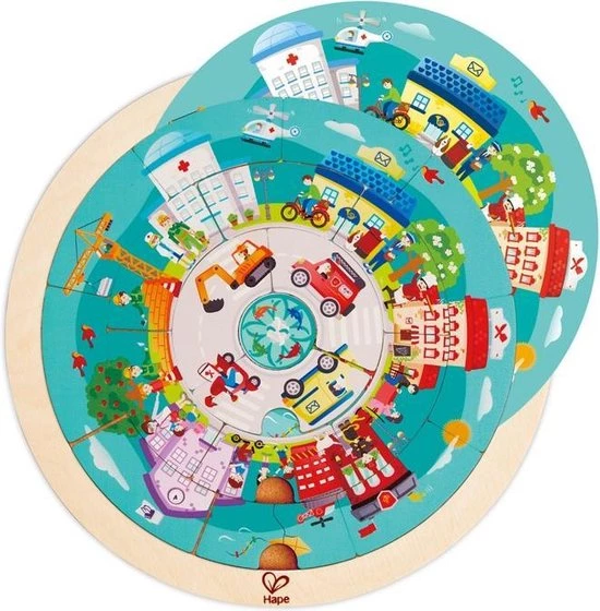 In een stad hebben mensen belangrijke taken te vervullen! Deze dubbelzijdige puzzel informeert over de beroepen brandweerman, leraar, postbode, kok, arts en bouwvakker.