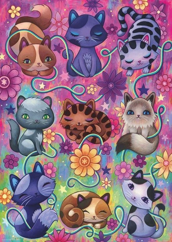 Puzzel Kitty Cats 1000 stukjes Heye NIEUW 2021 Serie; Dreaming. kunstenaar Jeremiah Ketner. Afmeting puzzel 50 x 70 cm. Standaard doos, maat 37 x 27 x 5.5 cm.