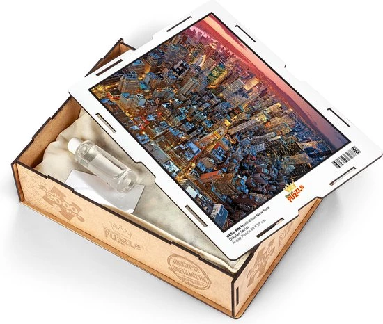 Manhathan New yorkhouten puzzel 2000 stukjes. Dankzij de lasersnijprecisie van 200 micron zijn alle onderdelen perfect op elkaar afgestemd.