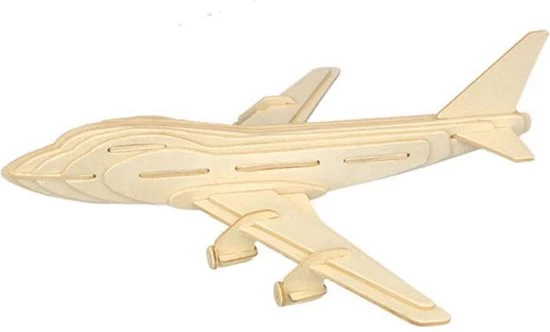 Merkloos Bouwpakket 3D Puzzel Vliegtuig Boeing 747 – Hout
