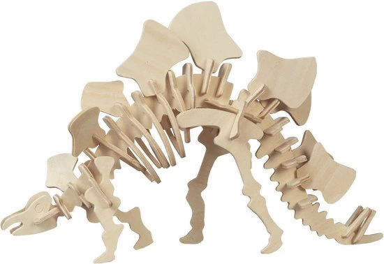 Merkloos Houten 3D Dieren Dino Puzzel Set Spinosaurus En Stegosaurus – Speelgoed Bouwpakketten