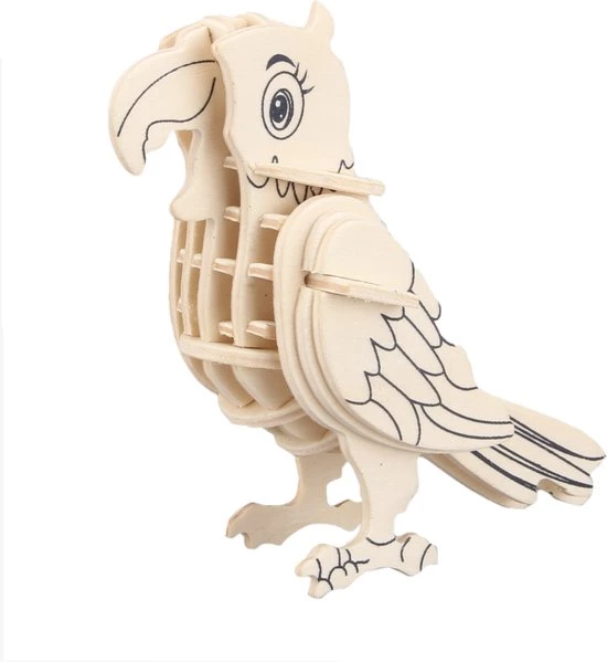 Merkloos Houten Dieren 3D Puzzel Papegaai – Speelgoed Bouwpakket 23 X 18,5 X 0,3 Cm.