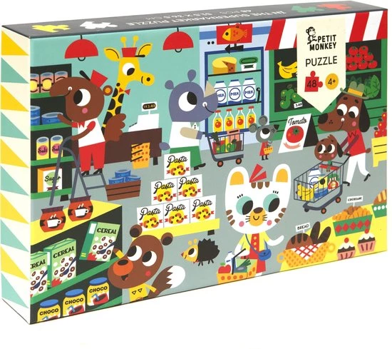 Petit Monkey Puzzel In De Supermarkt – Puzzel – 4 Jaar – 48 Pcs – Kinderpuzzel