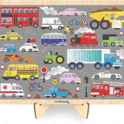 Mudpuppy Houten Puzzel Voertuigen Onderweg Incl. Standaard – 100 Stukjes