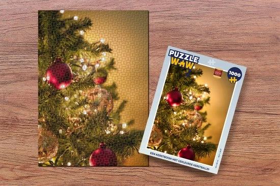 Puzzel 1000 stukjes – Een kerstboom met gekleurde kerstballen – Puzzels