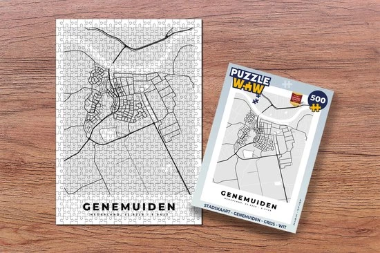 Puzzel 500 stukjes – Stadskaart – Genemuiden – Grijs – Wit – Legpuzzel