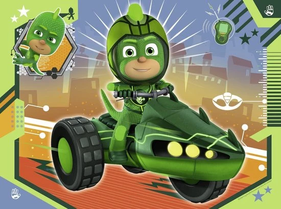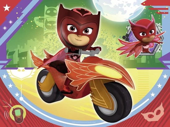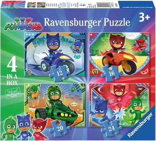 Ontsnap uit de realiteit en stap in de wereld van Ravensburger puzzels. Tijdens het puzzelen ontdekken kinderen hun grootse vaardigheden. Maak wel 4 verschillende puzzels met de speciale 12+16+20+24 puzzle box van Ravensburger! Dankzij de met de hand gemaakte stansmessen is de vormvariatie van de stukjes oneindig. Kinderen vanaf 3 jaar zullen genieten van de PJ Masks puzzels met 12, 16, 20 en 24 stukjes. Ravensburger puzzels met 12, 16, 20 en 24 stukjes met als thema PJ Masks.