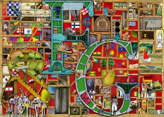 Ontsnap uit de realiteit en stap in de wereld van Ravensburger puzzels. Deze Ravensburger puzzel van 1000 stukjes is geschikt voor zowel beginnende als ervaren puzzelaars. En omdat onze geliefde puzzels een standaard formaat hebben, kun je het resultaat inlijsten en ophangen. Dankzij de met de hand gemaakte stansmessen is de vormvariatie van de stukjes oneindig. Jong en oud zullen genieten van deze Colin Thompson Awesome Alphabet F and G puzzel met 1000 stukjes. Ravensburger puzzel met 1000 stukjes met als thema Colin Thompson.