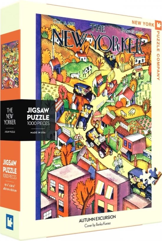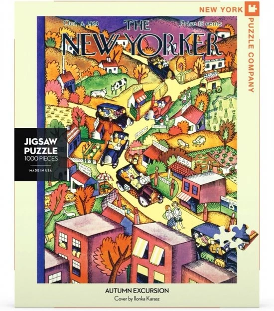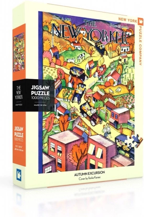 Maak een kleurrijke reis door dit landschap met deze puzzel van New York Puzzle Company en vang een glimp op van een drukke herfstdag. De puzzel heeft 1000 stukjes en heeft een linnen stijl afwerking zodat de puzzel minder glimt. Aanbevolen leeftijd: 13+ jaar.