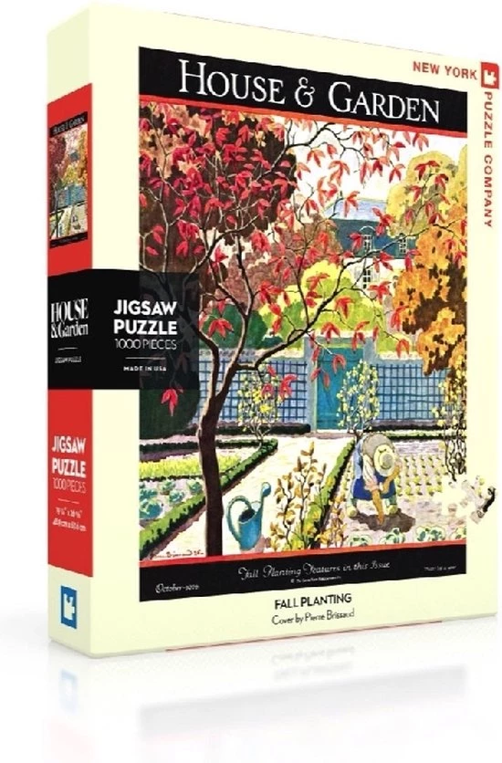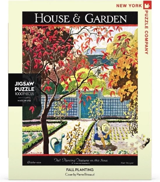 De opdruk van deze puzzel van New York Puzzle Company verscheen oorspronkelijk op de cover van het tijdschrift House & Garden in 1926 en is ontworpen door de Franse schilder Pierre Brissaud. Wanneer je de puzzel af hebt, kun je zien dat iemand aan het werk is in de moestuin en zaadjes aan het planten is. De puzzel heeft 1000 stukjes en heeft een linnen stijl afwerking zodat de puzzel minder glimt. Aanbevolen leeftijd: 13+ jaar.