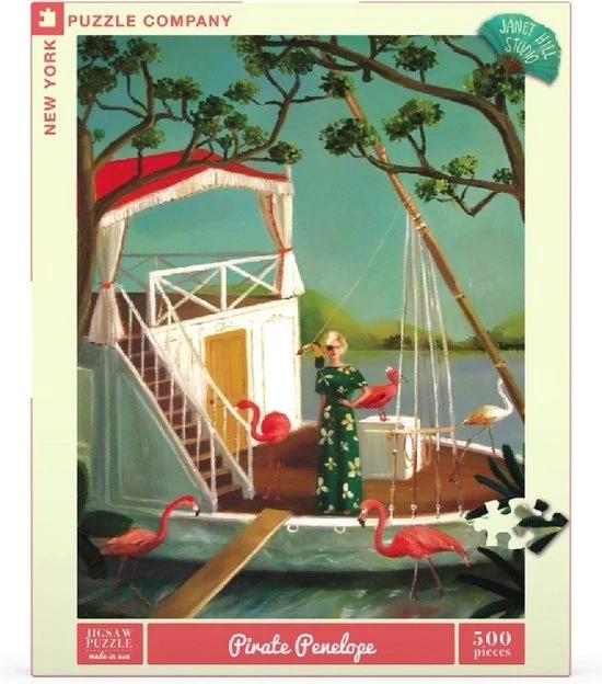 De illustratie op deze puzzel van New York Puzzle Company is geschilderd door Janet Hill. Op de puzzel zie je Piraat Penelope aanmeren om haar kleurrijke bemanning op haar boot te laten voordat ze op het kalme water gaat zeilen. De puzzel heeft 500 stukjes en heeft een linnen stijl afwerking zodat de puzzel minder glimt. Aanbevolen leeftijd: 10+ jaar.