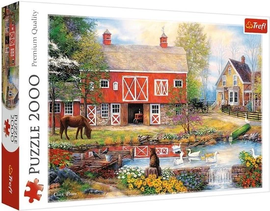 Mooie puzzel van 2000 stuk met een afbeelding van het boerderijleven.