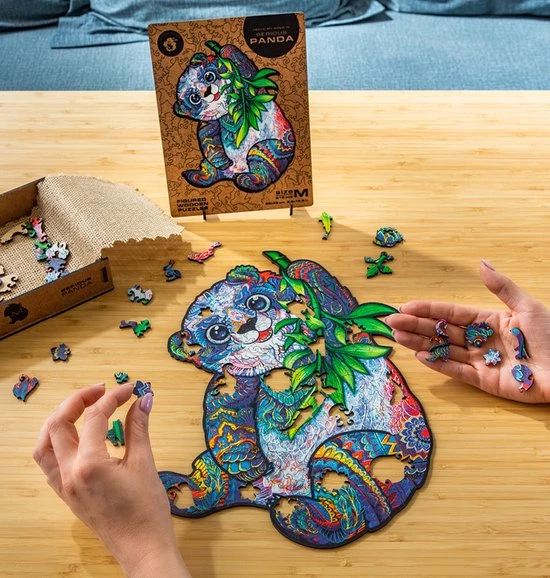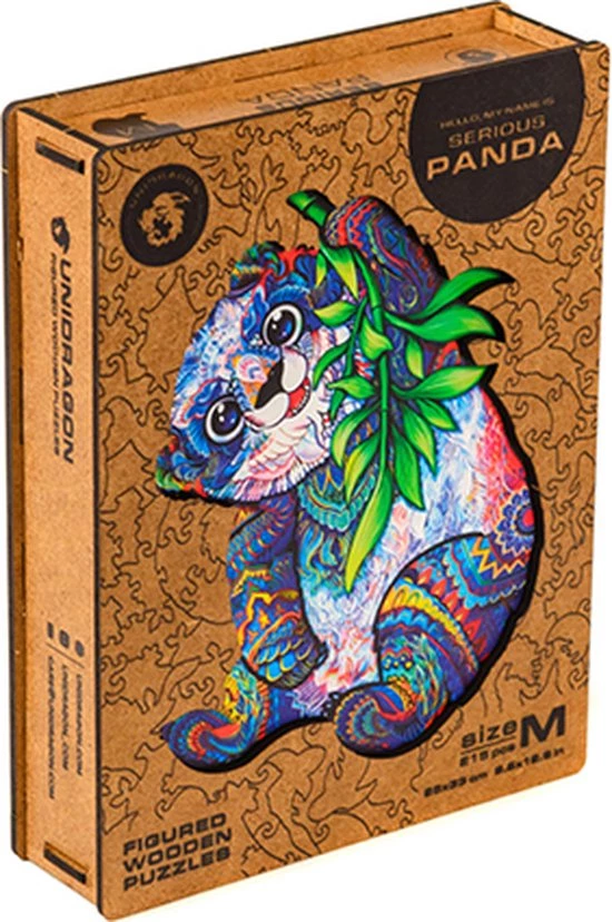 - Product: UNIDRAGON Houten Puzzel Dier – Serieuze Panda – Medium – 21 x 35 cm