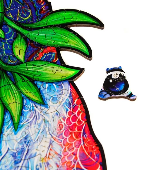 Ga op avontuur en ontdek tussen de prachtige bamboejungle een schattige panda. Deze puzzel bevat unieke stukjes die elk een verhaal vertellen over een grote pandafamilie die geniet van een lunch tussen bloemen, vogels en dieren. Met deze puzzel leer je ook veel over de natuur van het Oosten. Deze houten puzzel is een echte hersenkraker die het hele gezin leuk zal vinden.