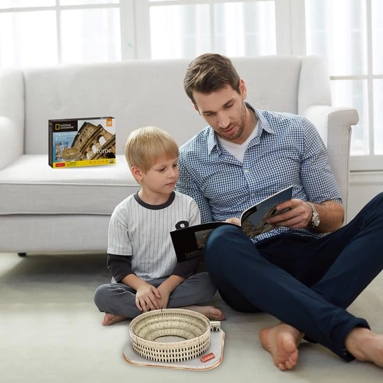 National Geographic 3D-puzzel van het Colosseum is een combinatie van puzzelen én bouwen. Het eindresultaat is een stevig gebouw, zonder daarbij lijm te hoeven gebruiken. Het Colosseum was het grootste amfitheater (ronde theater) uit het Romeinse rijk. Mede daarom had het had vele gebruiken: voor sportevenementen, gevechten met wilde dieren en natuurlijk de beroemde gladiatorengevechten. De bouw van dit amfitheater heeft naar schatting zo’n acht jaar geduurd heeft. Hopelijk lukt het jou thuis sneller! Bestaat uit 131 losse onderdelen. Wordt geleverd in full-colour doos. Geschikt voor kinderen vanaf 10 jaar.