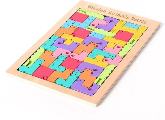 Met deze houten Dieren Tetris puzzel kun jij lekker samen met je kind een potje tetris spelen, zonder dat op een schermpje te moeten doen!