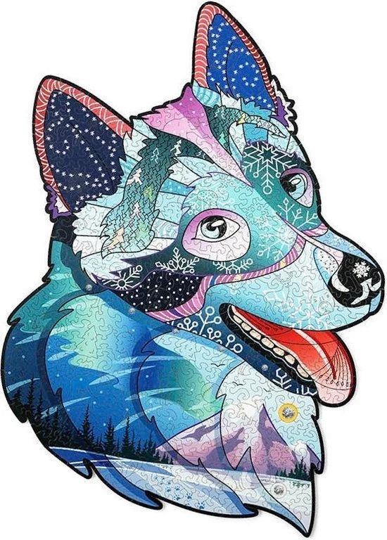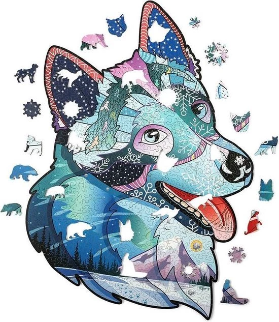 - Product: Wood Trick Dappere Husky – Houten Vormpuzzel – 48.1×34.3 cm – 332 stukjes