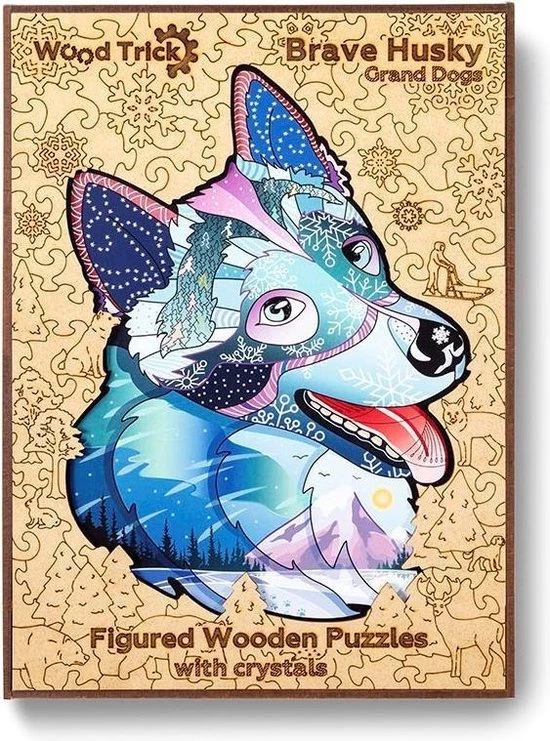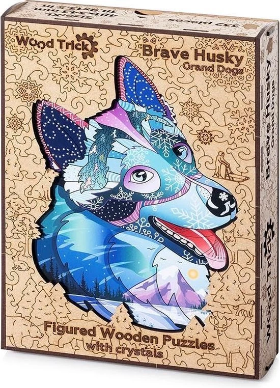 Ga lekker aan de slag met deze superleuke Wood Trick vormpuzzel. Deze puzzel bestaat uit 332 stukken die samen een vrolijke en speelse Husky-puppy vormen. Deze dappere husky is ook nog eens versierd met Swarovski kristallen. Deze houten puzzel is een superleuke bezigheid voor zowel volwassenen als kinderen. De puzzel is gemaakt van milieuvriendelijk hout en hoogwaardige veilige verf. Het leuke van deze puzzel is dat de stukjes niet gebogen of gebroken kunnen worden, zodat je er heel lang van kunt genieten.