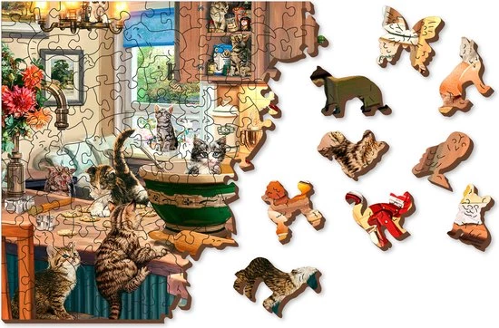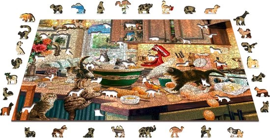 Wooden City Puzzel: KITTEN KITCHEN CAPERS 1010/100, in hout, 8+